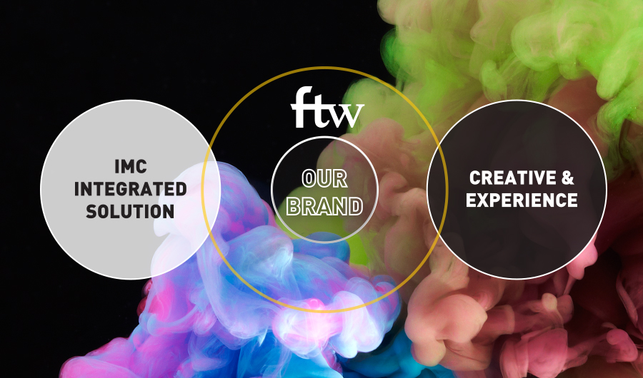 에프티떠블유의 브랜드 커뮤니케이션을 위한 깊은 생각과 IMC 서비스는 색다른 시너지를 창출합니다. 에프티떠블유는 미래지향적인 사고를 바탕으로 귀사의 비지니스에 새로운 생명력을 부여합니다. 모두가 공감하는 생각을 우리는 더 뚜렷하게 성공적으로 만들어 갑니다. 에프티떠블유는 깊은 생각으로 마음을 움직입니다.